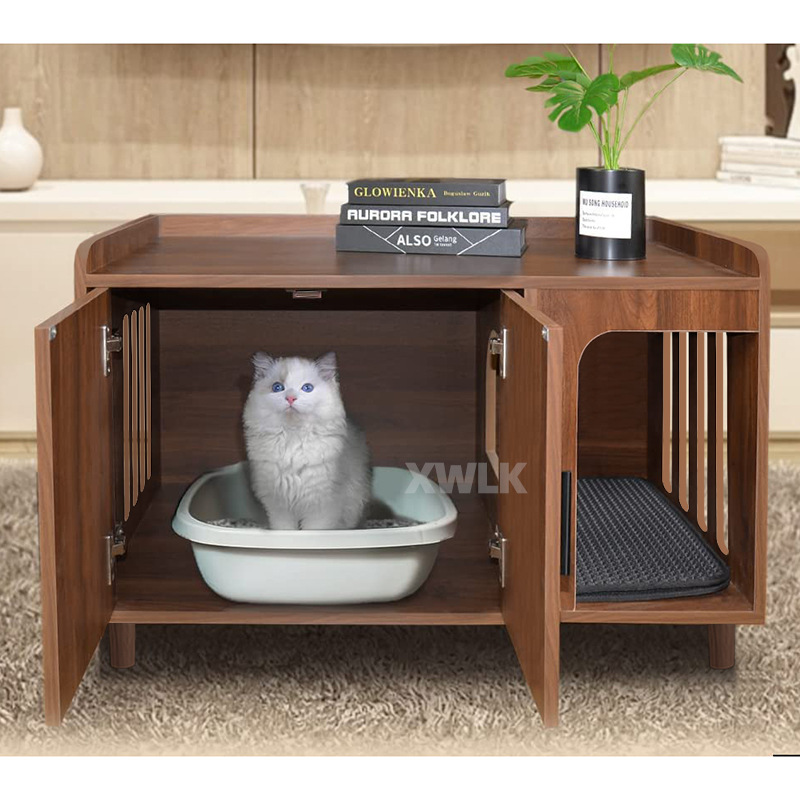 😽Selected Pet-safe Materials - Constructed with robust MDF, the PLUROOF hidden litter box is built to last. It features a sisal scratch pad to safeguard your cat's paws during their scratching sessions; a lightweight, odorless PVC-foam mat at the entry catches excess litter. The cabinet's surface boasts a waterproof veneer for easy wipe-downs, though prolonged exposure to liquids should be avoided to maintain the integrity of the veneer.